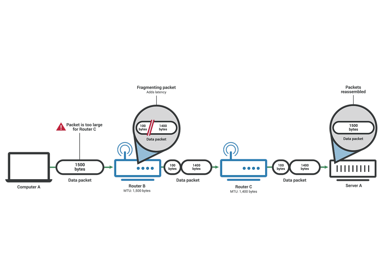 패킷은 다수의 네트워크 장비를 통해 전달되는데, 이 때 네트워크 장비의 MTU보다 큰 패킷(보통 1500byte)은 패킷이 분할된다. (패킷의 단편화)