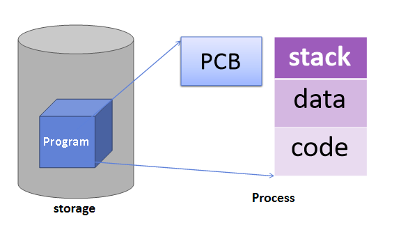 프로그램 실행 → 프로세스 생성 → 프로세스 주소 공간에 (코드, 데이터, 스택) 생성 → 이 프로세스의 메타데이터들이 PCB에 저장