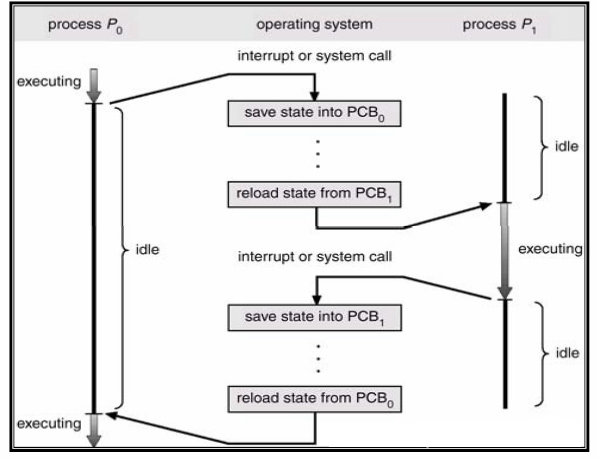 - 인터럽트(interrupt)가 걸림 -> 현재 수행하고 있는 P0을 먼저 PCB0에 저장