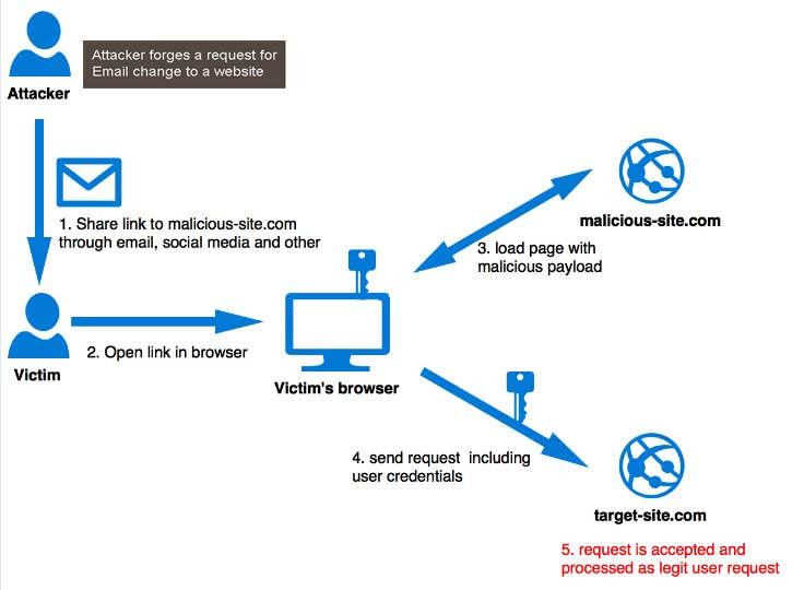 - 서버는 요청이 유효한 사용자로부터 온 것처럼 인식하고 실행.
