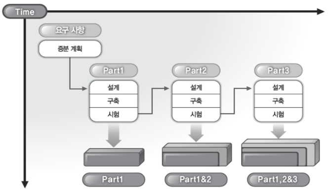 - 폭포수 모델 변형. 증분 따로 개발 후 통합 (증분마다 실행 가능한 완성 모듈 인도, 병행개발o)