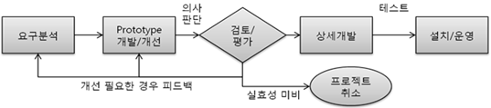 시스템 일부분을 일시적 구현 <--> 요구사항 반영 반복